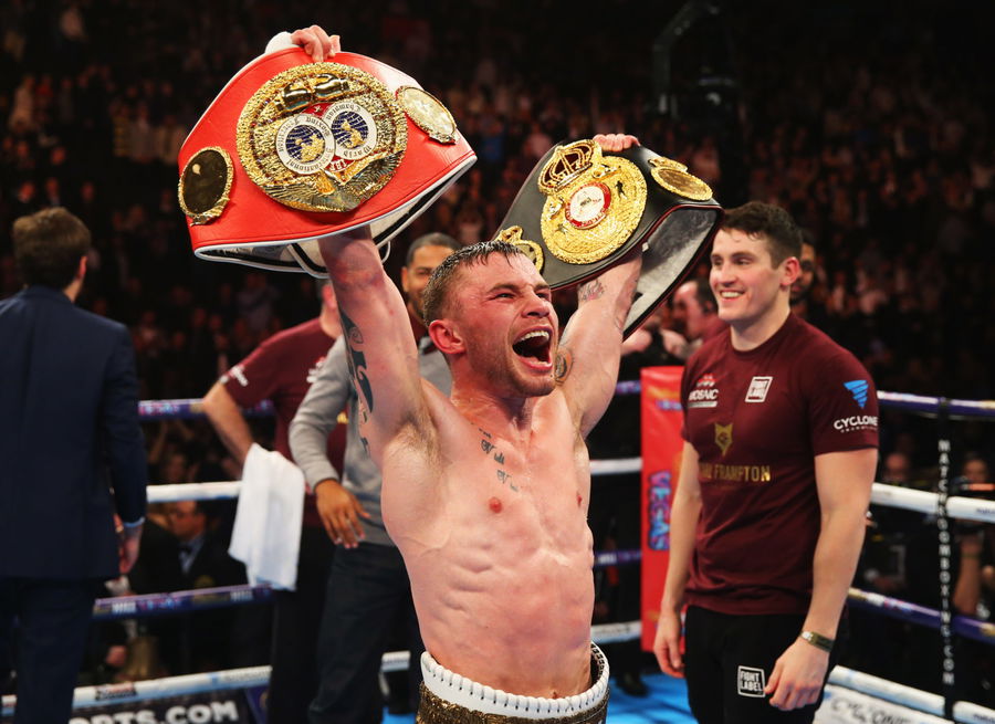 MANCHESTER, ENGLAND – FEBRUARY 27: Carl Frampton celebrates a points victory over Scott Quigg after their World Super-Bantamweight title contest at Manchester Arena on February 27, 2016 in Manchester, England. Frampton’s victory united the WBA and IBF titles. (Photo by Alex Livesey/Getty Images)