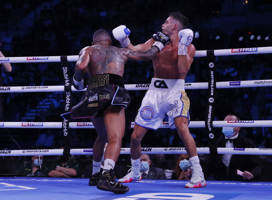 Boxing – Conor Benn v Chris Algieri – WBA Continental Welterweight Title – Echo Arena, Liverpool, Britain – December 11, 2021 Conor Benn knocking down Chris Algieri during their fight Action Images via Reuters/Andrew Couldridge