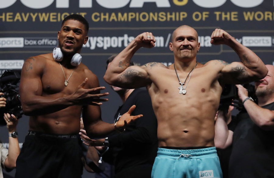 Boxing – Anthony Joshua v Oleksandr Usyk Weigh-in – The O2, London, Britain – September 24, 2021 Anthony Joshua and Oleksandr Usyk during the weigh-in Action Images via Reuters/Andrew Couldridge