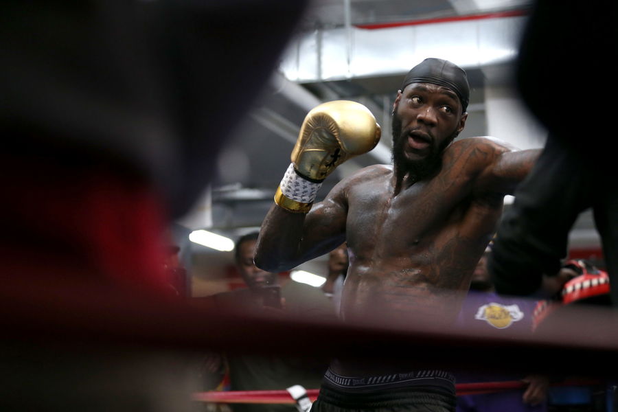 NEW YORK, NEW YORK – MAY 14: Deontay Wilder during a media work out at Gleason’s Gym on May 14, 2019 in New York City. (Photo by Michael Owens/Getty Images)