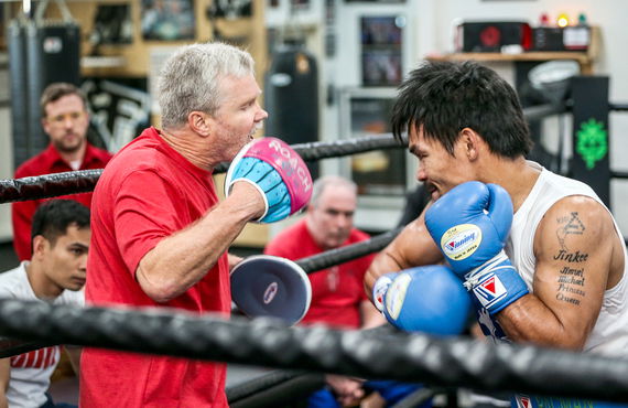 Freddie Roach said, “I remember when he [Manny Pacquiao] walked into the gym one day and he said I hit you pretty good on the mitts and he says, can we try it. And I said yeah let’s go and we went up to the ring and did a run. One round of mitts and he went over to his people and said, ‘I think we have a new trainer and I said I think I have a world champion on my hands.”