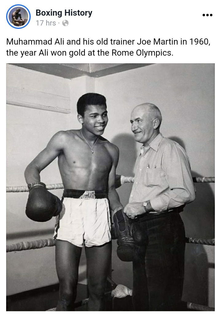 The picture of the duo has evoked memories and emotions in boxing fans around the world. Many have taken to Facebook to share their thoughts about Joe Martin and his disciple, ‘The Greatest’ Muhammad Ali.