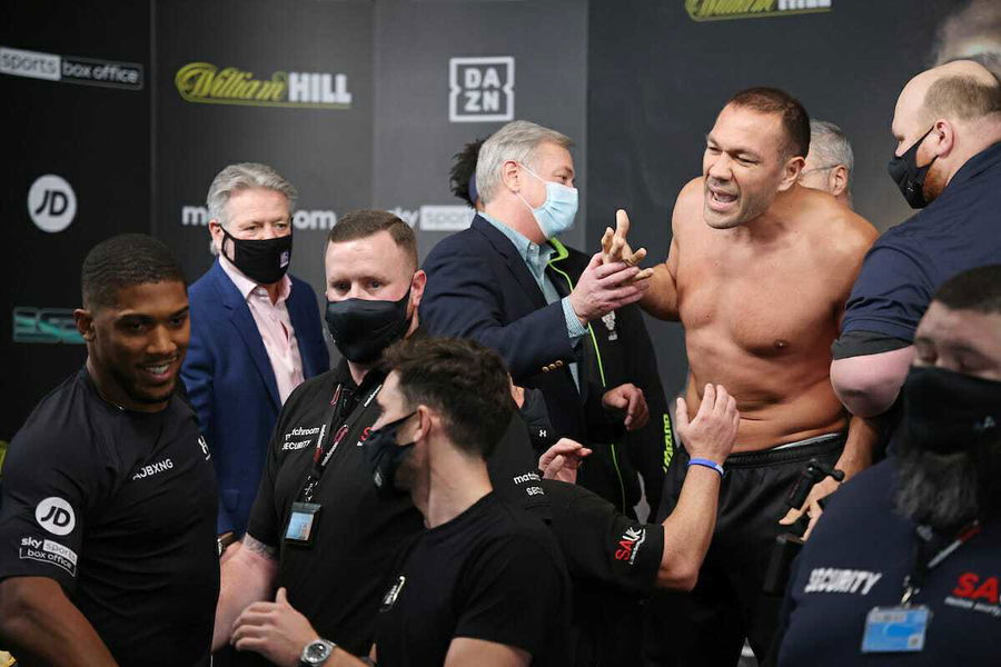 Anthony Joshua had a fiery face-off with Kubrat Pulev during their weigh-in. The WBA, IBF, and WBO heavyweight titles will be on the line when two men collide in a titanic clash on Saturday. If their face-off is anything to go about, then we are in for a treat.