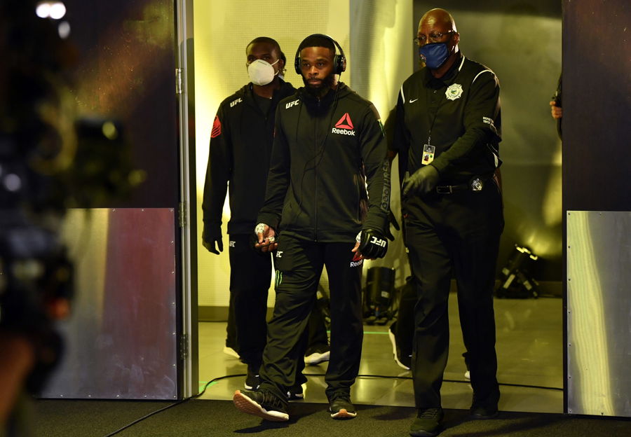 LAS VEGAS, NEVADA – MAY 30: Tyron Woodley battles Gilbert Burns in a welterweight bout during the UFC Fight Night event at UFC APEX on May 30, 2020 in Las Vegas, Nevada. (Photo by Jeff Bottari/Zuffa LLC)