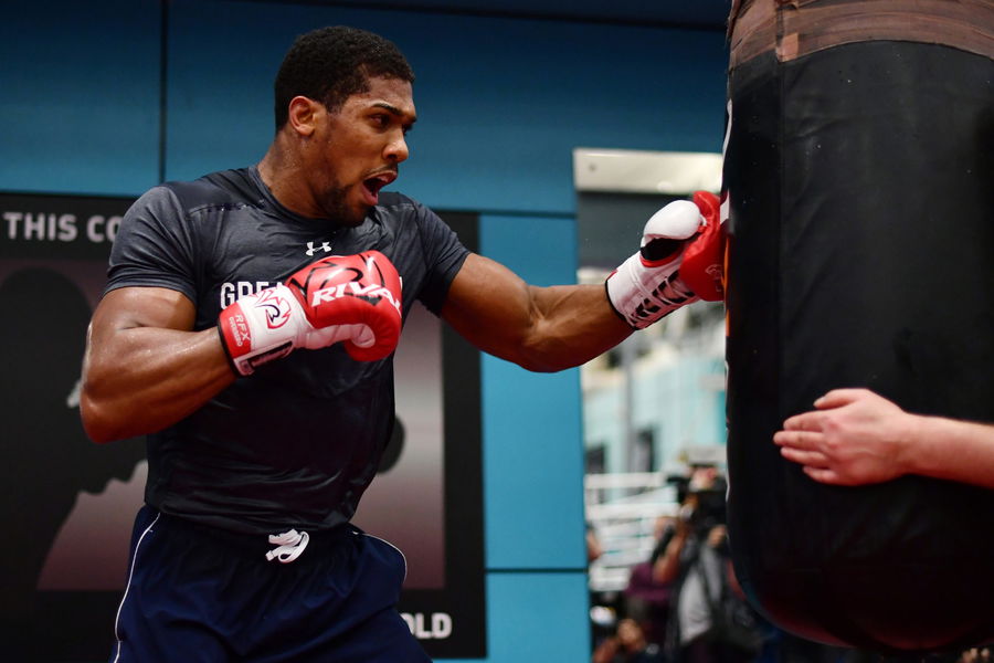 SHEFFIELD, ENGLAND – APRIL 19: Anthony Joshua trains during the media workout at EIS Sheffield on April 19, 2017 in Sheffield, England. (Photo by Dan Mullan/Getty Images)
