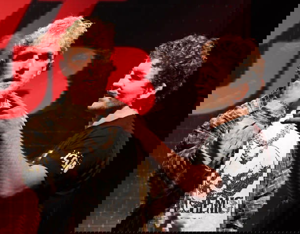 LAS VEGAS, NEVADA – MARCH 26: Jake Paul (L) and Ben Askren face off during a news conference for Triller Fight Club’s inaugural 2021 boxing event at The Venetian Las Vegas on March 26, 2021 in Las Vegas, Nevada. Paul and Askren will face each other in the main event that will take place on April 17, 2021, at Mercedes-Benz Stadium in Atlanta. (Photo by Ethan Miller/Getty Images)