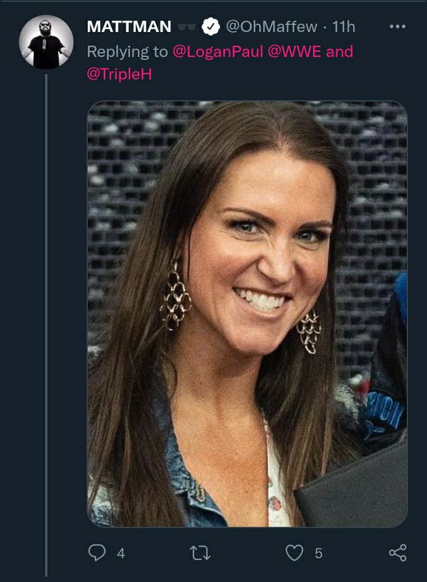 However, MATTMAN, in a hilarious yet meaningful comment, posted a zoomed countenance of Stephanie McMahon from the same photo Paul shared.