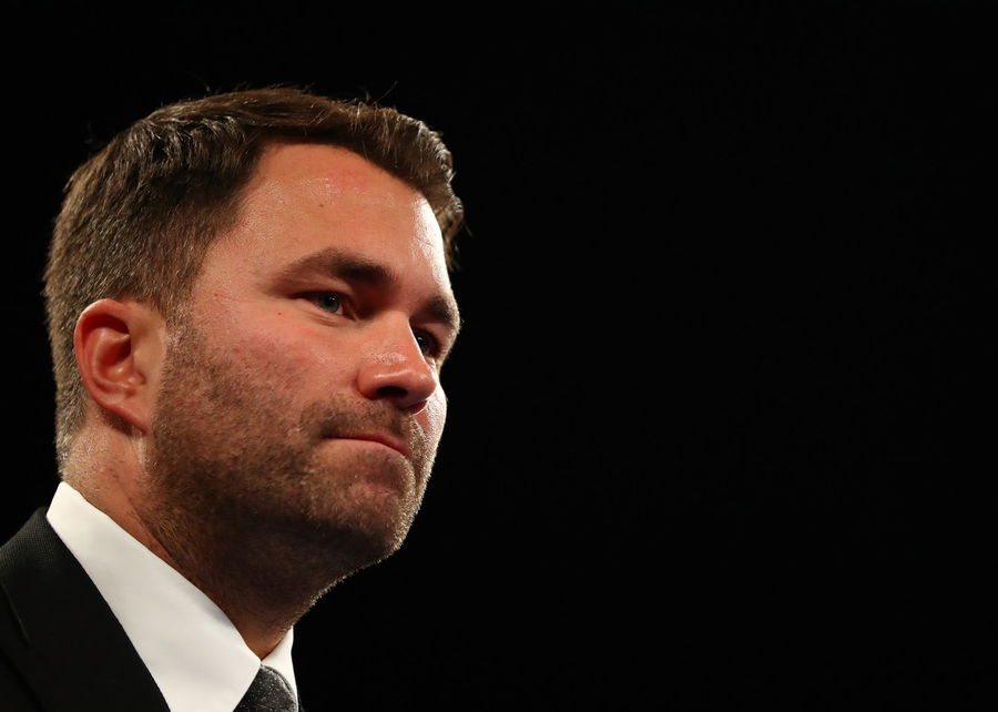 UNIONDALE, NY – NOVEMBER 11: Boxing Promoter Eddie Hearn looks on before the Daniel Jacobs vs Luis Arias Middleweight bout at Nassau Veterans Memorial Coliseum on November 11, 2017 in Uniondale, New York. (Photo by Al Bello/Getty Images)
