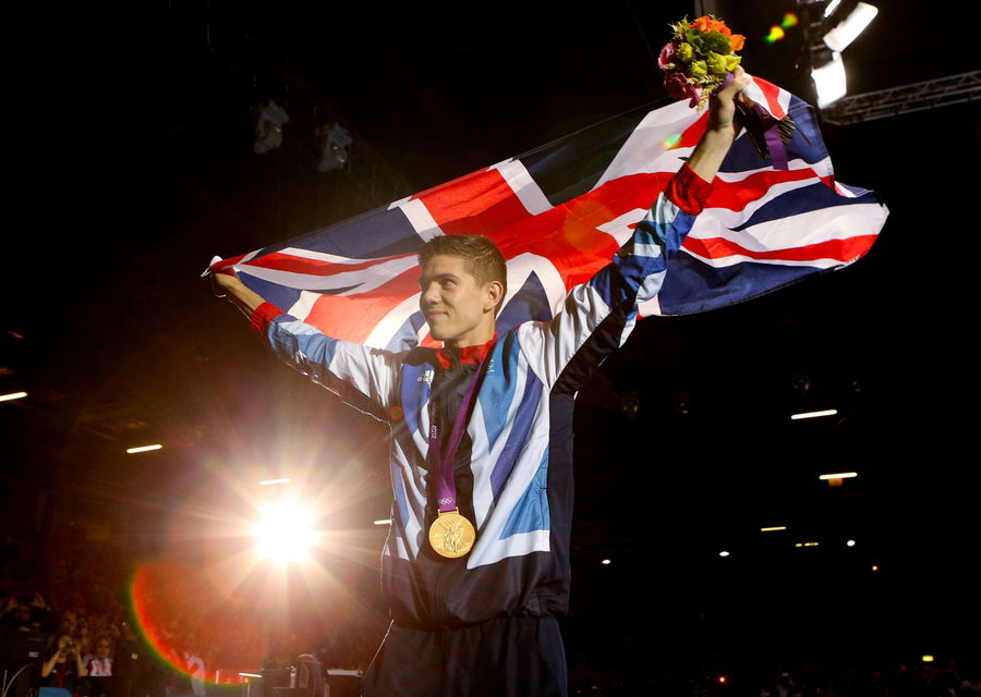 LONDON, ENGLAND – AUGUST 11: Gold medalist Luke Campbell of Great Britain celebrates after the medal ceremony for the Men’s Bantam (56kg) Boxing final bout on Day 15 of the London 2012 Olympic Games at ExCeL on August 11, 2012 in London, England. (Photo by Scott Heavey/Getty Images)
