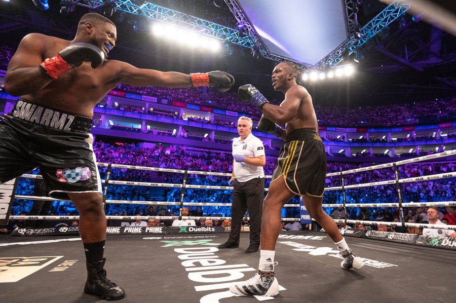 MF & DAZN SERIES 001 – Fight Night Youtube personality KSI and rapper Swarmz during their Two Fights in One Night cruiserweight boxing bout. London The O2 UK Copyright: xJohnxBarryx JB2_5041