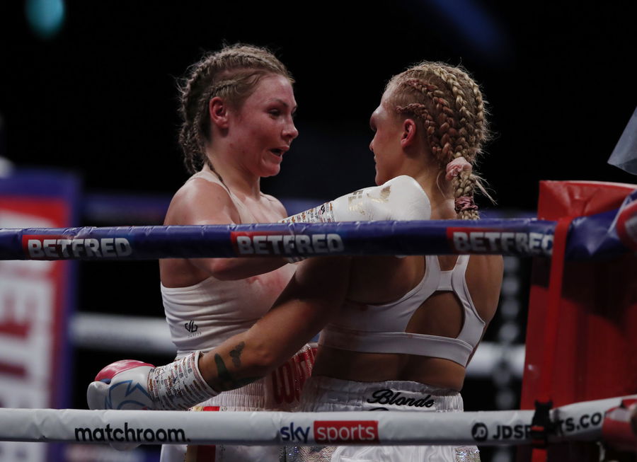 Boxing – Shannon Courtenay v Ebanie Bridges – WBA World Bantamweight Title. The SSE Arena, London, Britain. April 10, 2021. Shannon Courtenay with Ebanie Bridges after the fight Action Images via Reuters/Andrew Couldridge