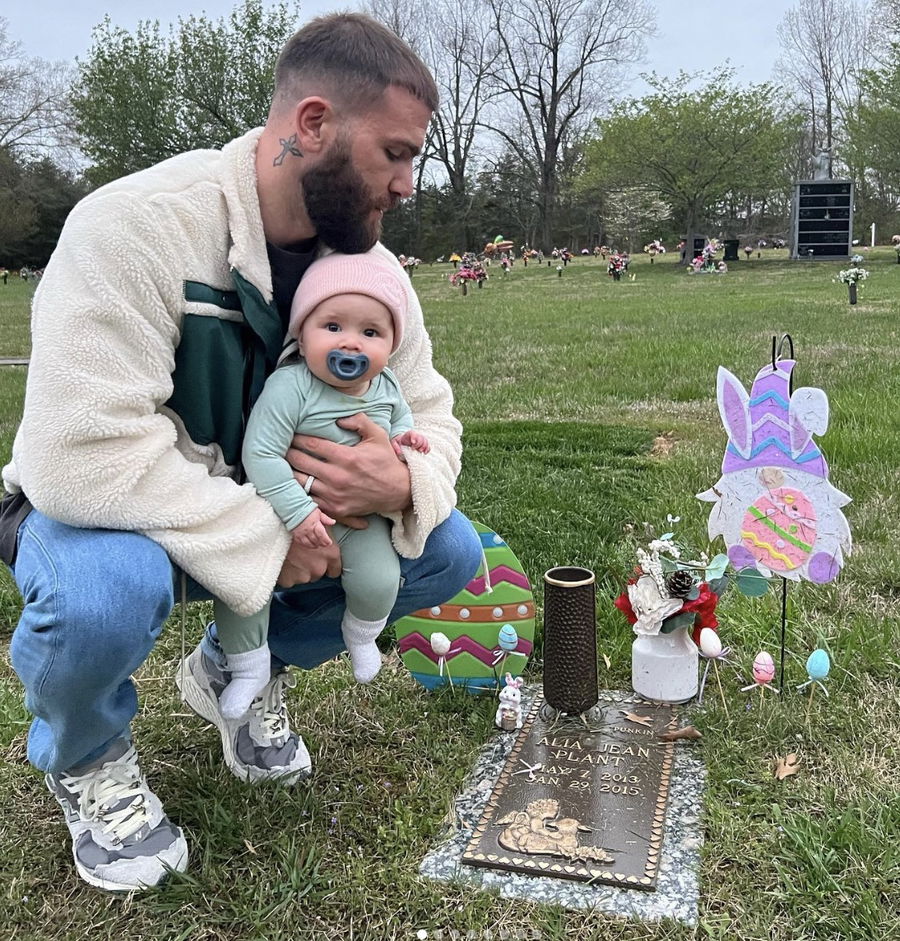 Caleb Plant and daughter Charly Plant visiting Alia Plant’s grave.