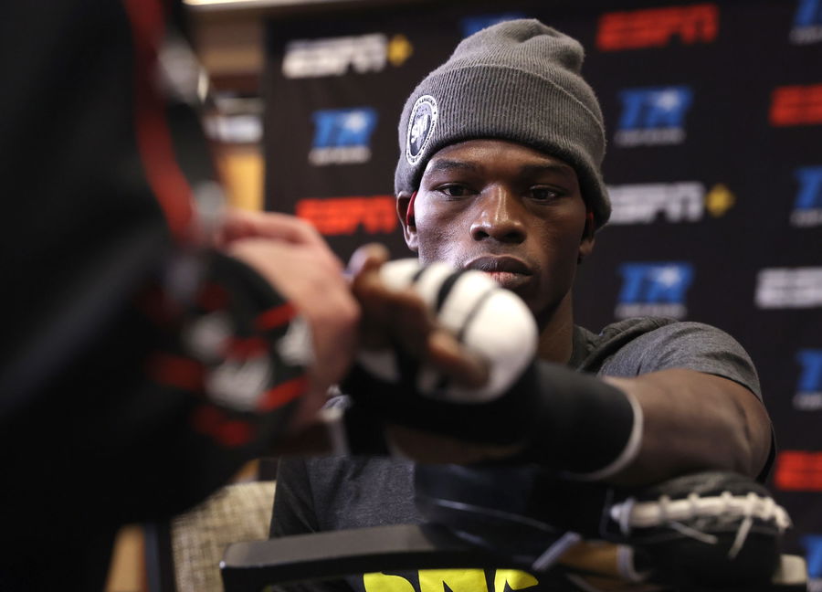 LAS VEGAS, NV – FEBRUARY 13: Richard Commey gets his hand wrapped before his fight against Jackson Marinez at the MGM Grand Conference Center on February 13, 2021 in Las Vegas, Nevada. (Photo by Mikey Williams/Top Rank Inc via Getty Images)