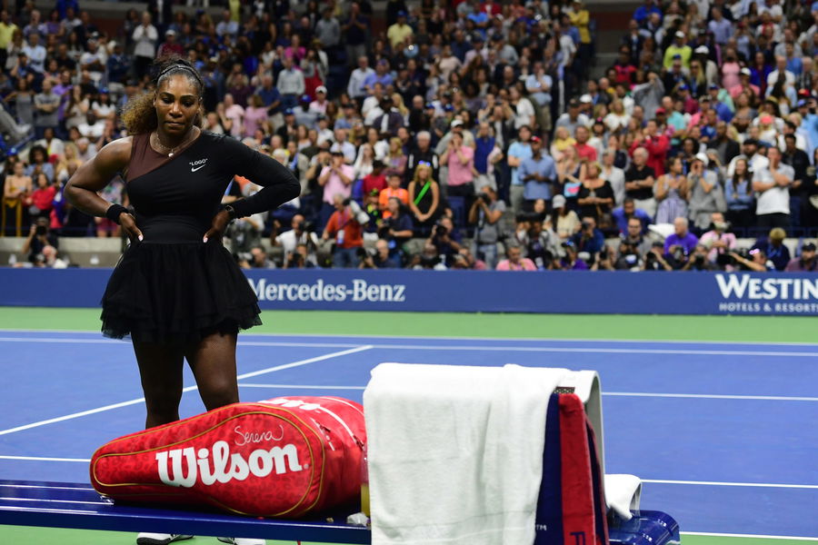 NEW YORK, NY – SEPTEMBER 08: Serena Williams of the United States reacts after her defeat in the Women’s Singles. (Photo by Sarah Stier/Getty Images)