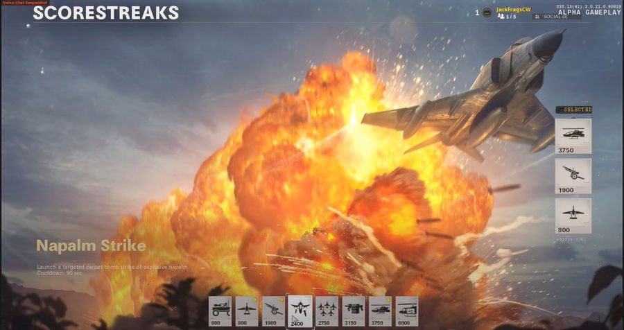 Field Upgrades include Proximity Mine, SAM Turret, Jammer, and Field Mic. Scorestreaks also marks a return with this game. The available Scorestreaks in the alpha build are Spy Plane, Attack Helicopter, Artillery, RC-XD, Napalm Strike, Air Patrol, War Machine, and Chopper Gunner.
