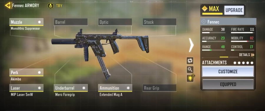Gunsmith attachments for Akimbo Fennec in Call of Duty Mobile