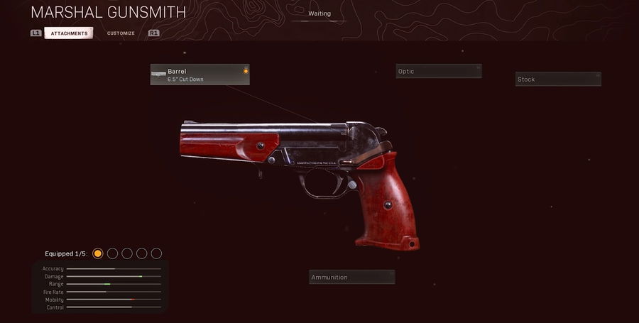 The Marshal has four attachment slots in the barrel, optic, ammunition and the stock. However, only adding a barrel helps in the weapon’s improvement. The options for ammunition and the stock massively decrease the damage output of the Marshall. Other than that, as it’s a Sawed-Off Shotgun, adding an optic makes no sense at all. But, it’s definitely good to select the 6.5″ Cut Down barrel for the added damage range and bullet velocity.