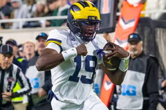 NCAA, College League, USA Football: Michigan at Michigan State Oct 21, 2023 East Lansing, Michigan, USA Michigan Wolverines quarterback Jack Tuttle 13 sprints upfield against the Michigan State Spartans in the fourth quarter at Spartan Stadium. East Lansing Spartan Stadium Michigan USA, EDITORIAL USE ONLY PUBLICATIONxINxGERxSUIxAUTxONLY Copyright: xDalexYoungx 20231021_tbs_qn1_345