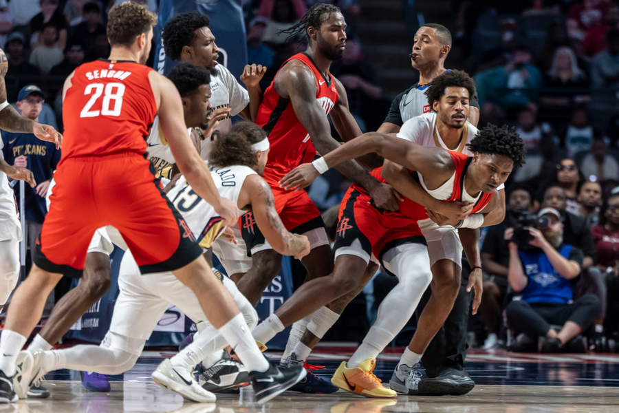 Preseason sparks flew as Amen Thompson and Jose Alvarado clashed during the Pelicans vs. Rockets matchup before the NBA season begins.