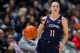 The team colors of the UConn Huskies are navy blue, white, and gray.