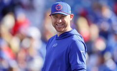 Jan 21, 2024; Orchard Park, New York, USA; Buffalo Bills head coach Sean McDermott reacts against the Kansas City Chiefs during the second half for the 2024 AFC divisional round game at Highmark Stadium. Mandatory Credit: Mark J. Rebilas-USA TODAY Sports