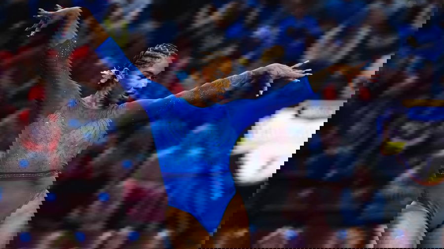 LOS ANGELES, CALIFORNIA - SEPTEMBER 25: Simone Biles performs during the Gold Over America Tour at Staples Center on September 25, 2021 in Los Angeles, California. (Photo by Katharine Lotze/Getty Images)