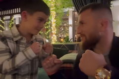 Merab Dvalishvili reacts to fan joke aimed at Ilia Topuria amid his ongoing divorce drama, as the UFC stars hang out during the holidays.