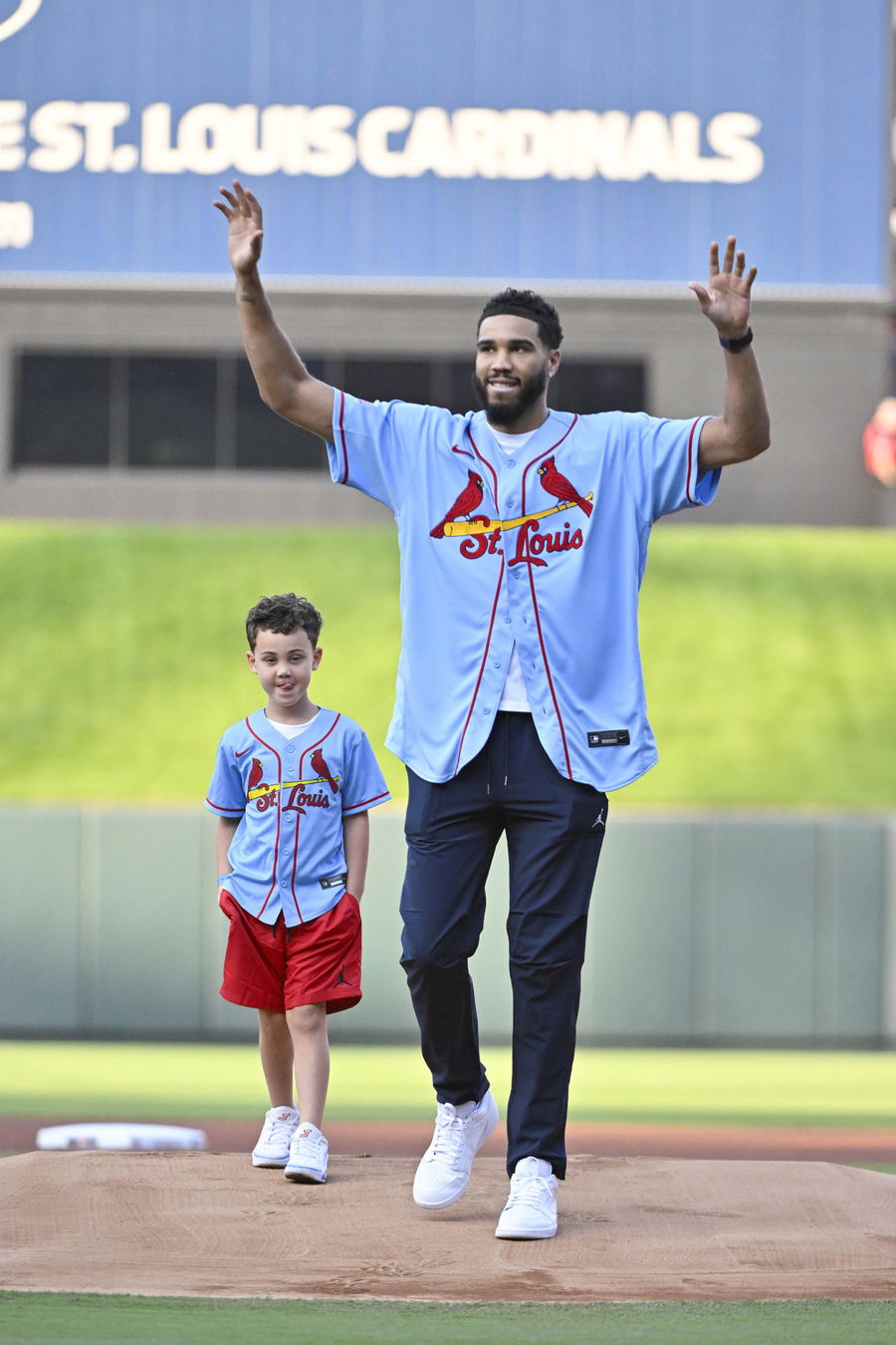 MLB, Baseball Herren, USA Minnesota Twins at St. Louis Cardinals Aug 1, 2023 St. Louis, Missouri, USA Boston Celtics forward Jayson Tatum throws out a first pitch before a game between the St. Louis Cardinals and the Minnesota Twins at Busch Stadium. St. Louis Busch Stadium Missouri USA, EDITORIAL USE ONLY PUBLICATIONxINxGERxSUIxAUTxONLY Copyright: xJeffxCurryx 20230108_jwc_ac1_010