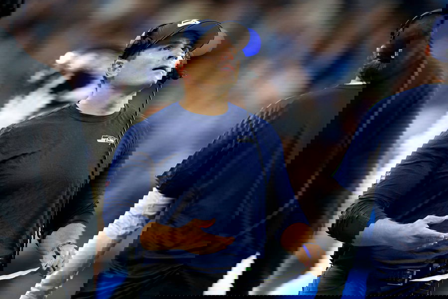 Seattle Seahawks vs. Detroit Lions DETROIT, MICHIGAN-SEPTEMBER 30: Seattle Seahawks head coach Mike Macdonald looks on f