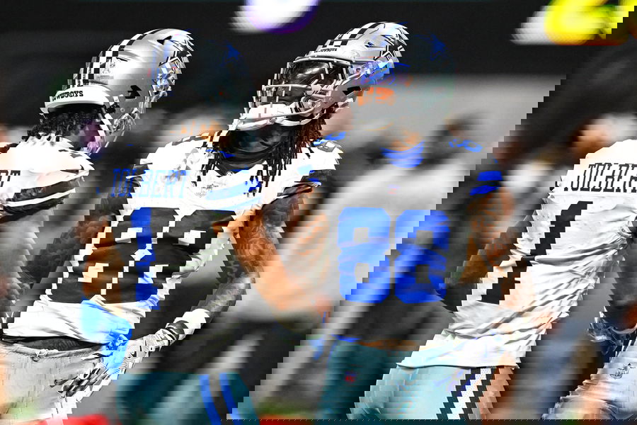ATLANTA, GA Ð NOVEMBER 03: Dallas quarterback Dak Prescott 4 greets his linemen Cooper Beebe 56 and Brock Hoffman 67 as they enter the field prior to the start of the NFL, American Football Herren, USA game between the Dallas Cowboys and the Atlanta Falcons on November 3rd, 2024 at Mercedes-Benz Stadium in Atlanta, GA. Photo by Rich von Biberstein/Icon Sportswire NFL: NOV 03 Cowboys at Falcons EDITORIAL USE ONLY Icon241103090