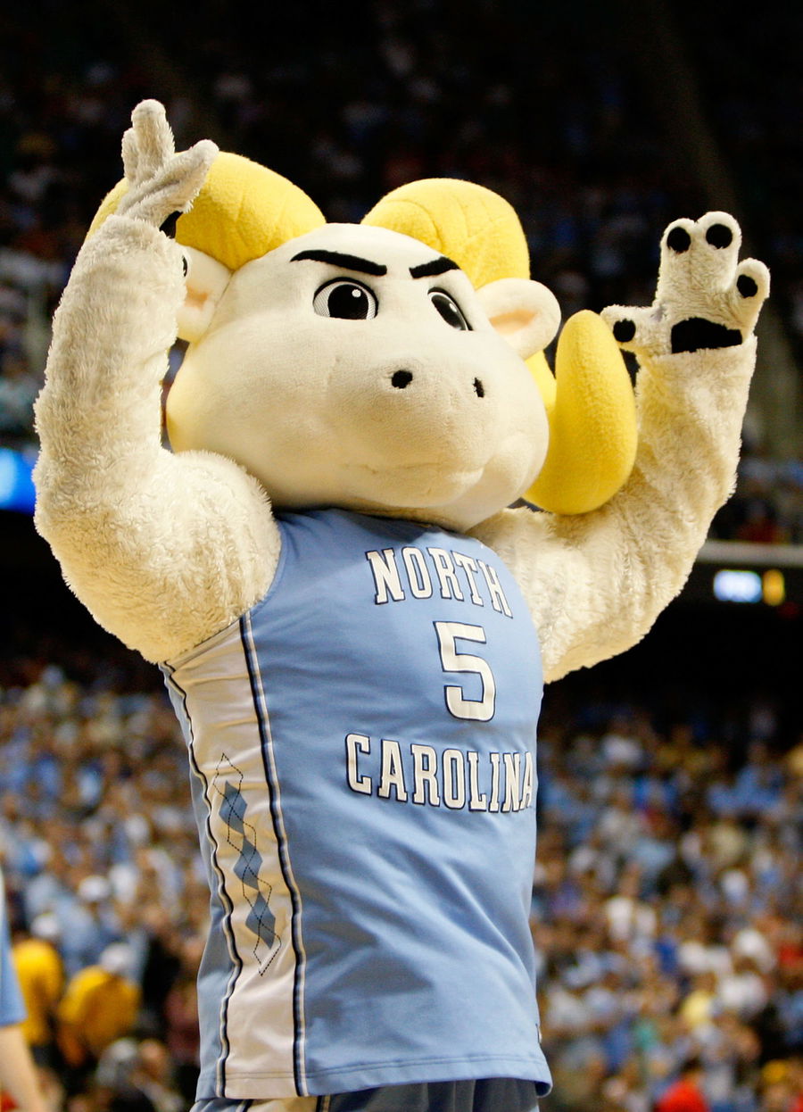 The mascot of the UNC Tar Heels basketball team is Rameses the Dorset Ram. The origin of the name dates back to 1924 when students cheered for Jack “The Battering Ram” Merritt, wearing a Ram costume. The first official Rameses mascot arrived over half a decade later, during the 1987-88 season.