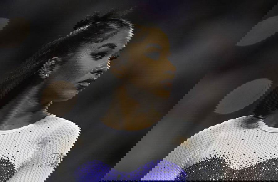 LOS ANGELES, CALIFORNIA - SEPTEMBER 25: Simone Biles performs during the Gold Over America Tour at Staples Center on September 25, 2021 in Los Angeles, California. (Photo by Katharine Lotze/Getty Images)