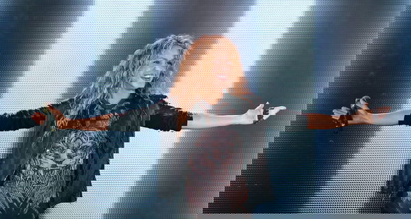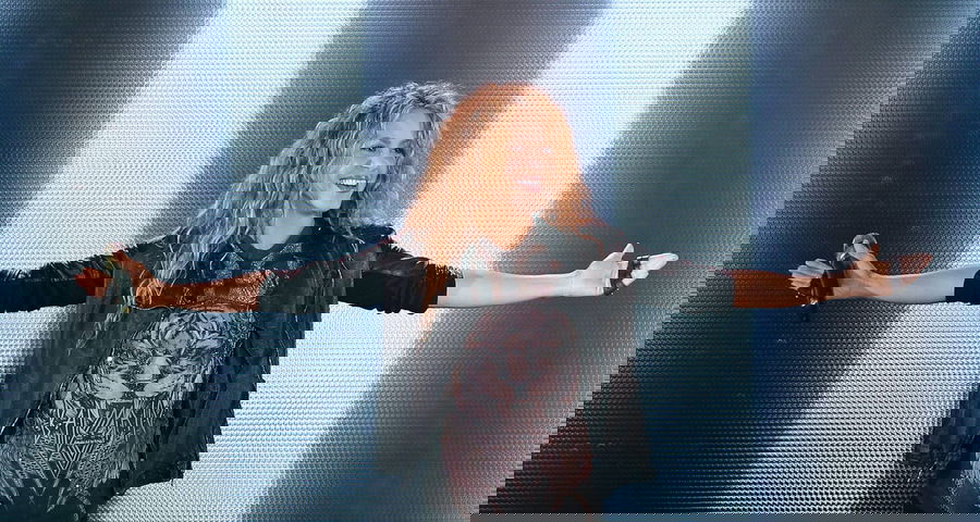 Colombian singer Shakira performs during a concert as part of her El Dorado World Tour at the Azte