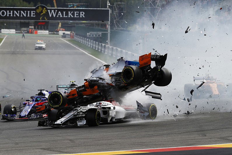 The FIA’s investigation for the Belgian Grand Prix start crash has concluded, that the halo saved Charles Leclerc from being hit on the visor by Fernando Alonso‘s end-plate.