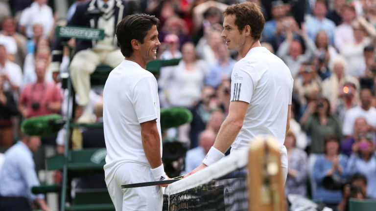 Andy Murray and Fernando Verdasco share a light moment after their epic encounter