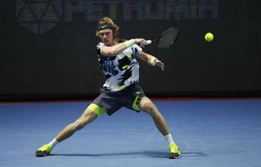 Russia’s Andrey Rublev in action during his semi final match against Russia’s Denis Shapovalov REUTERS/Anton Vaganov