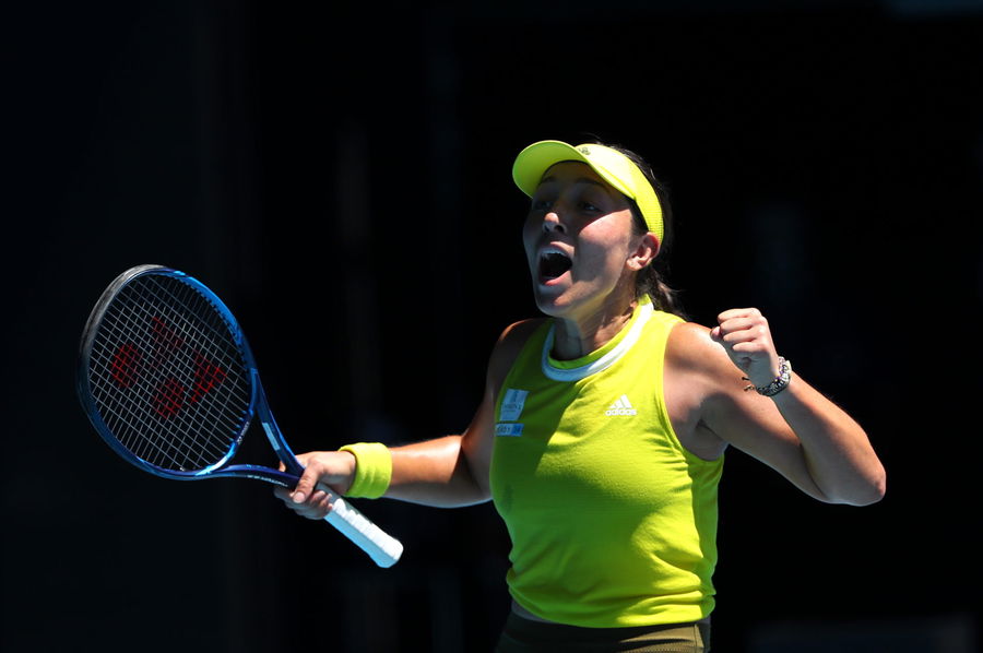 Tennis – Australian Open – Melbourne Park, Melbourne, Australia, February 15, 2021 Jessica Pegula of the U.S. celebrates winning her fourth round match against Ukraine’s Elina Svitolina REUTERS/Kelly Defina