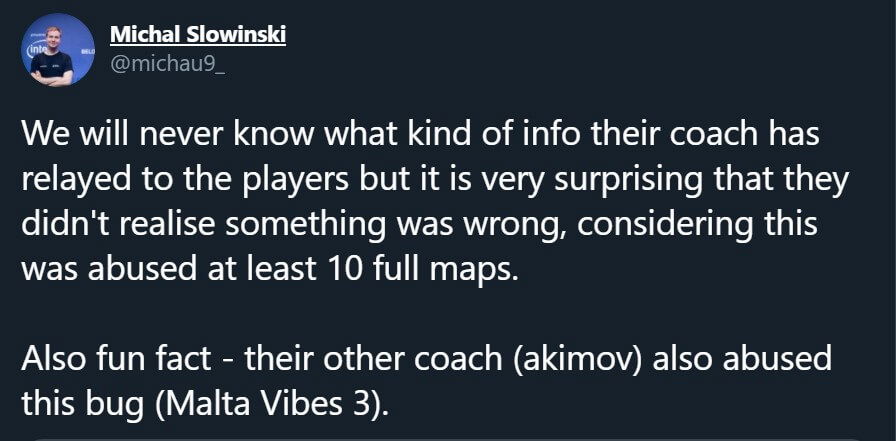 ESL has successfully banned the three coaches involved in the scandal while the investigation is still underway. Another piece of news on this matter surfaced just a couple of days ago when former NiP coach Faruk “pita” Pita released a statement confessing that he exploited the bug back in 2018.