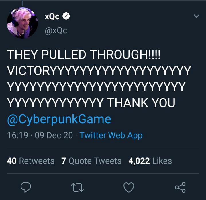 His dream of playing Cyberpunk 2077 at the same time as other big streamers was so close. Just a couple of hours after this tweet, xQc posted another tweet. In that tweet, the variety streamer said that the developers pulled through. He thanked them and said that he will stream the game all day.