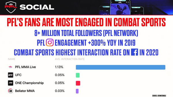 On Facebook in 2020, the PFL has featured a 2000 percent greater interaction rate between fight fans, fighters, and the promotion in general.