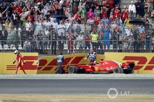 The Ferrari driver looked set to extend his championship lead over Lewis Hamilton with a victory at Hockenheim. Unfortunately, he slid off the road at the stadium section close to the end of lap 52 of 67. For the uninitiated, a brief rainshower hit the track and Vettel collided with the barriers.