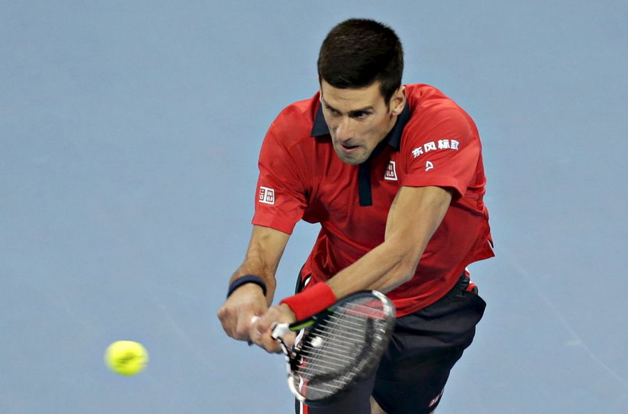 Novak Djokovic of Serbia hits a return to Rafa Nadal of Spain during the men’s singles final match at the China Open Tennis Tournament in Beijing, China, October 11, 2015. REUTERS/Jason Lee