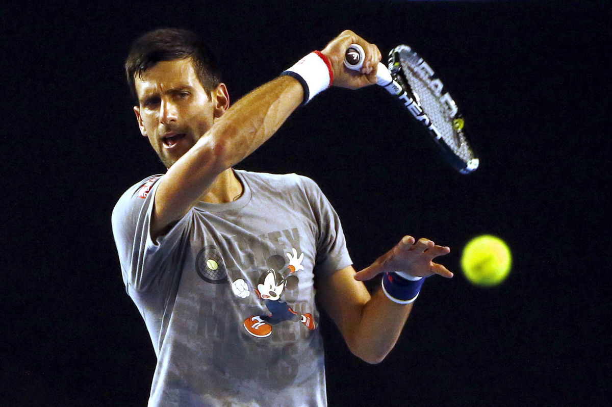 Serbia’s Novak Djokovic hits a shot during a practice session at Melbourne Park, Australia, January 14, 2016. The Australian Open tennis tournament starts January 18. REUTERS/David Gray