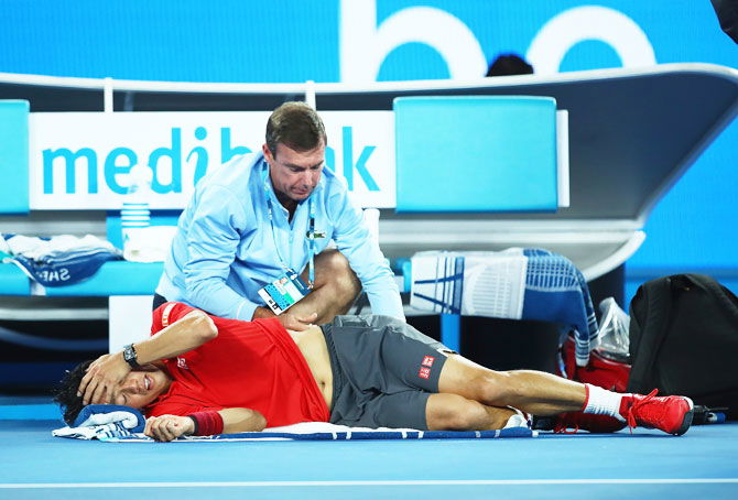 Nishikori retired with a right thigh problem, thus allowing Djokovic a chance to fight another day.