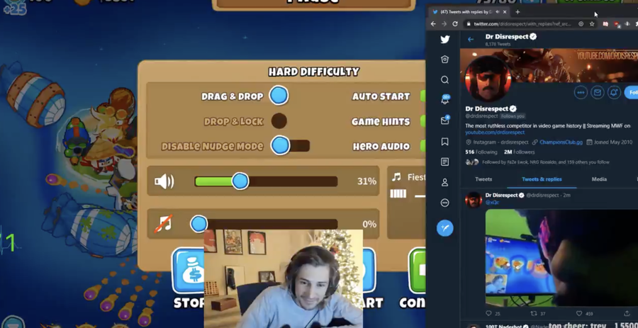 Felix is one of the biggest streamers on Twitch currently. He rakes in upwards of 50,000 viewers during the peak of his streams. Dr Disrespect feels streaming a game like Bloons TD 6 for so many viewers is extremely absurd. He recorded a video message for xQc and uploaded it on Twitter.