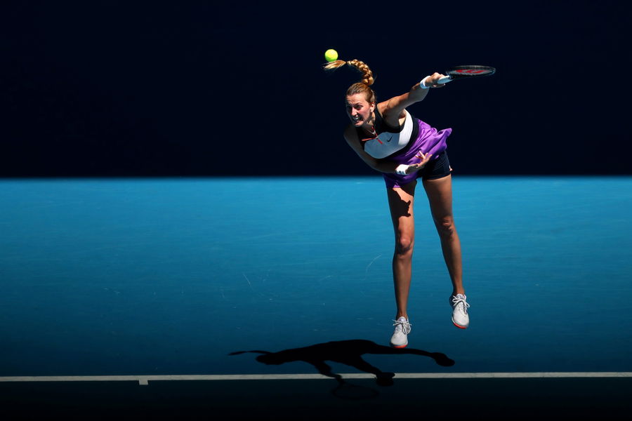 Tennis – Australian Open – Melbourne Park, Melbourne, Australia, February 10, 2021 Czech Republic’s Petra Kvitova in action during her second round match against Romania’s Sorana Cirstea REUTERS/Kelly Defina