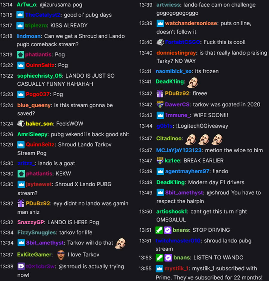 Fans were thrilled to see Shroud collaborate with the F1 prodigy Lando Norris. They spammed the chat with “pog” which is internet slang for fantastic, excellent, and remarkable. Further, the fans wanted the duo to livestream PlayerUnknown’s Battlegrounds (PUBG) together.