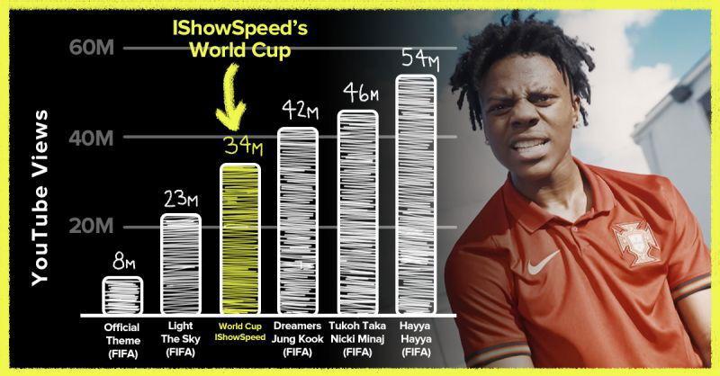 IShowSpeed has shocked the world as his music has reached a height that is challenging even the official anthems of World Cup 2022. The manager of MrBeast has shared interesting information about the standings of all the official songs released by the World Cup this year vs Speed’s fan music.