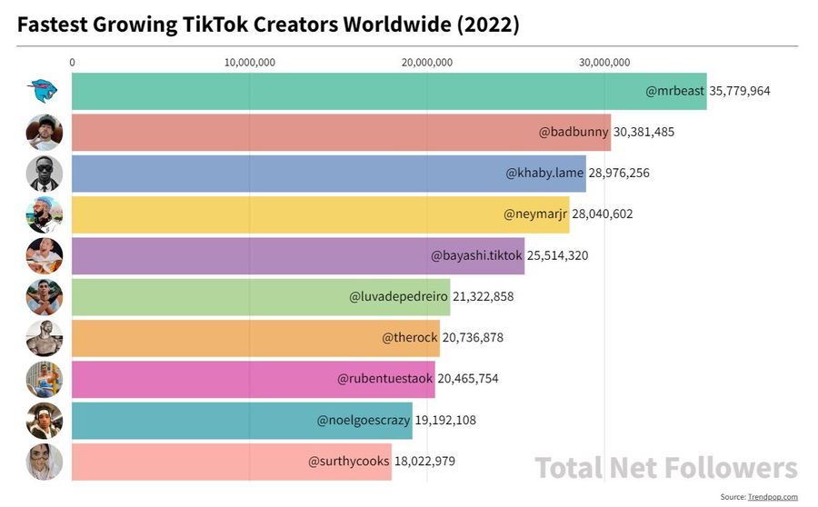 The first one among them is a record on TikTok. TikTok, the popular platform for sharing short videos, has become the go-to place for many in the past decade. And now, MrBeast has a record there. In 2022, MrBeast was the most followed creator on the platform. He had 35,779,964 followers on the platform. In the second position was @badbunny and Khaby Lame took the third.