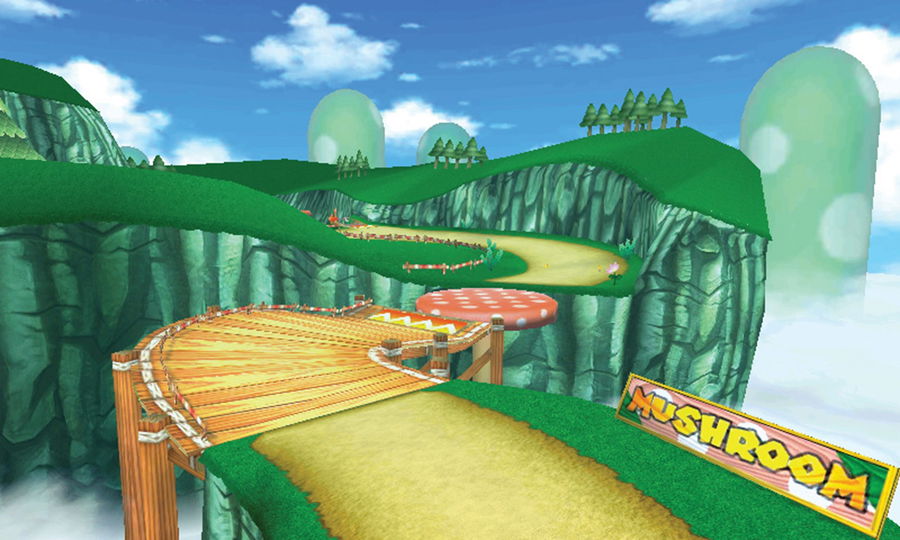 The racing game featured different courses and among them was also Mushroom Gorge. It’s the third course in the Mushroom Cup, located in the mountainous area with tall Mushroom Platforms.